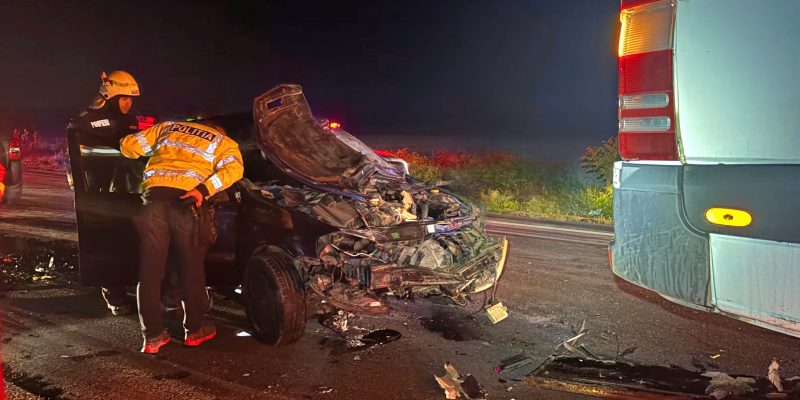 Pasagera din autoturism era inconștientă, fiind preluată de ambulanța SAJ și transportată la un spital din capitală.